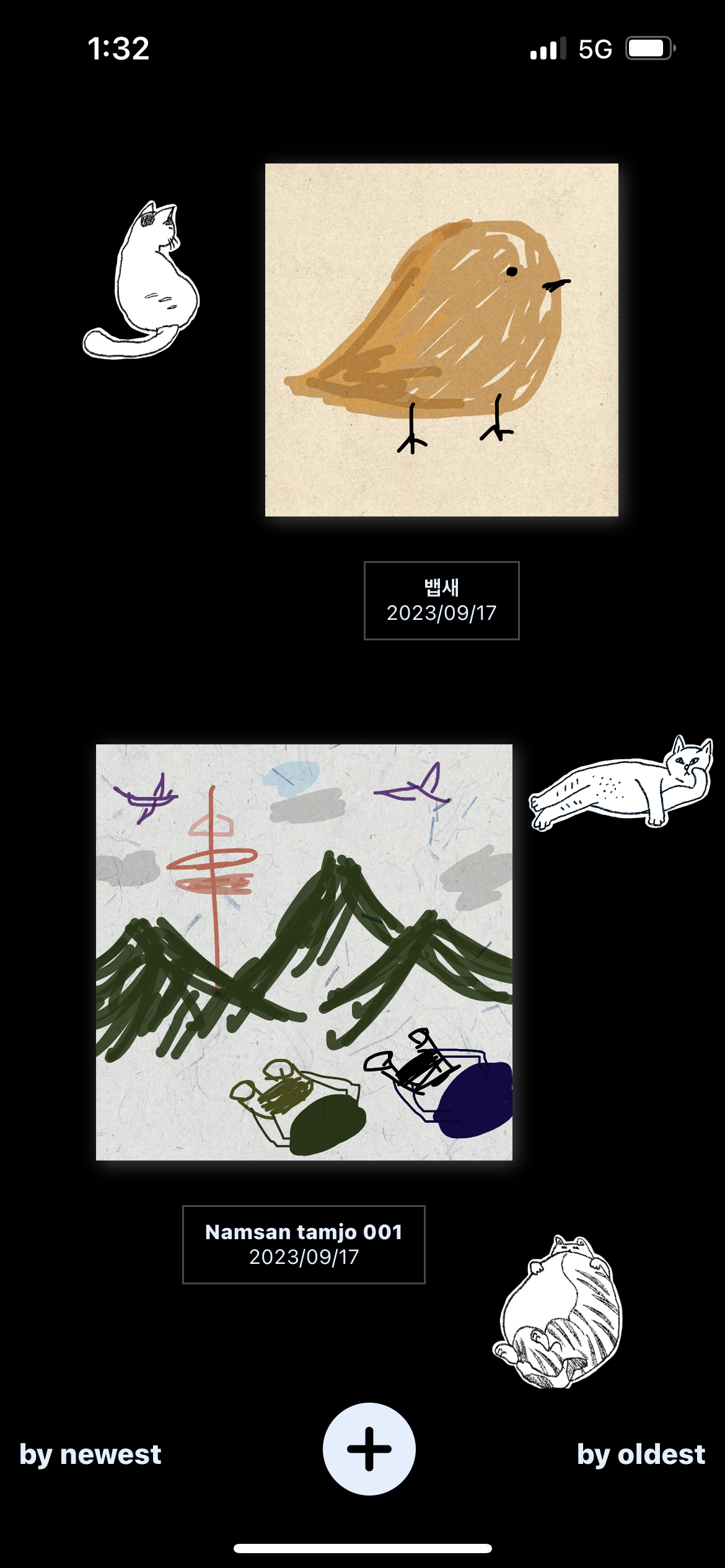 아무튼 그래서 그림을 그리면 고양이들이 찾아와서 구경하는 전시장 같은 리스트를 만들게 되었다.