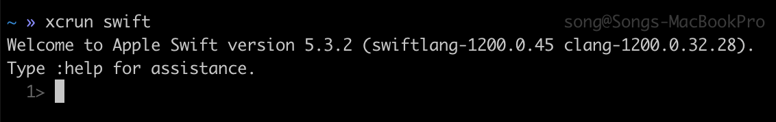 그리고 다시 xcrun swift를 입력하여 실행하면, 잠시 후 환영 메시지와 함께 REPL이 실행된다.